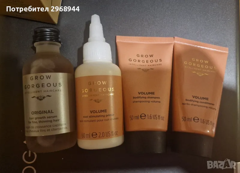 Grow Gorgeous Volume Growth Discovery Kit: комплект с пробен размер, който доказано трансформира косите от фини в плътни и страхотни. интензивно подхранена коса с огледален блясък. Пълноразмерна бутилка от желания оригинален серум за растеж на косата, обогатен с кофеин, доказано повишава плътността на кичурите само за 4 седмици