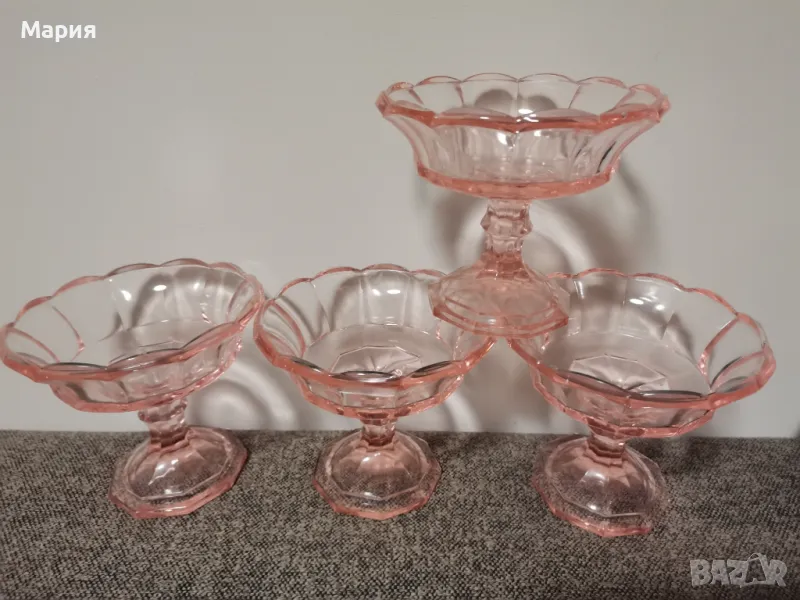 Великолепие в розово, отлично състояние, размери височина 12см.,диаметър 14см. Многофункционално приложение, за десерти, мусове, сладолед, мелба, бонбони, дребни сладки или плодове. Налични 4 броя.