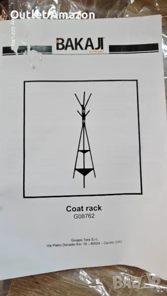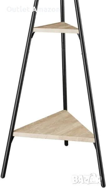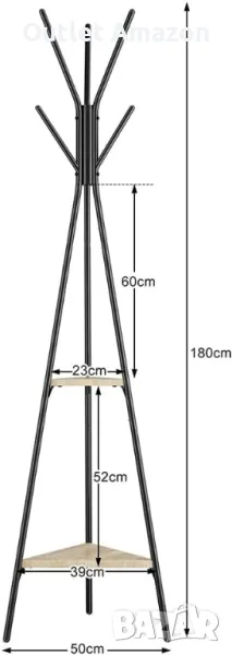 BAKAJI Черна подова закачалка за палта Спестяващ място модел Торонто, подова поставка с 5 куки и 2 рафта за входа, поставка за дрехи за палта, шапки, чанти. Размери на продукта 49 x 49 x 180 cm; 3,52 кг