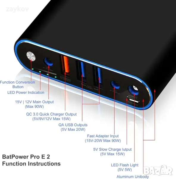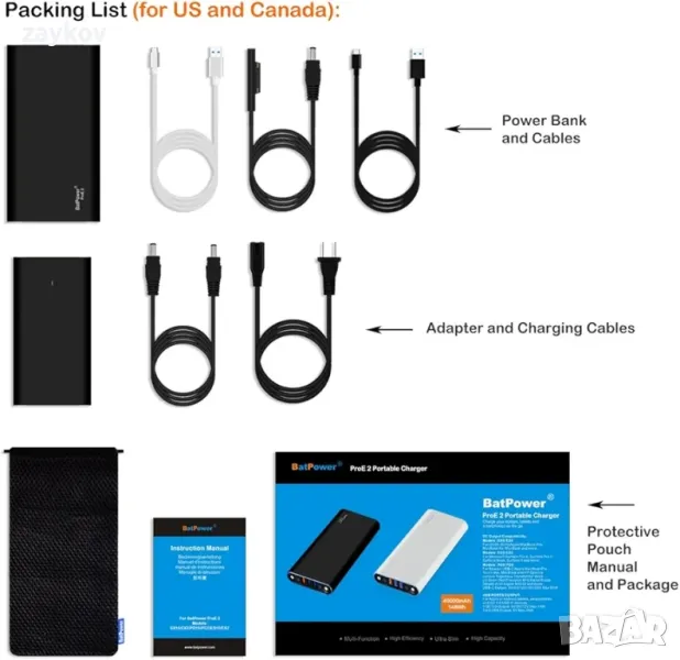 BatPower ProE 2 Surface Portable Charger 148Wh: DC изход: 15V (макс. 95W) Съвместим с Microsoft Surface Book 3 2 1 Surface Laptop 4 3 2 1 Power Bank Surface Pro X 8 7 6 5 4 3 Go