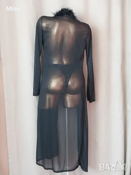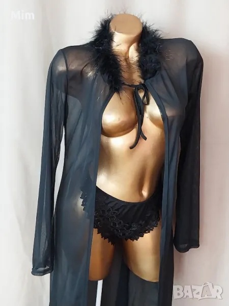 S/M Дълъг, ефирен, черен халат с пухчета → Обява 49230323