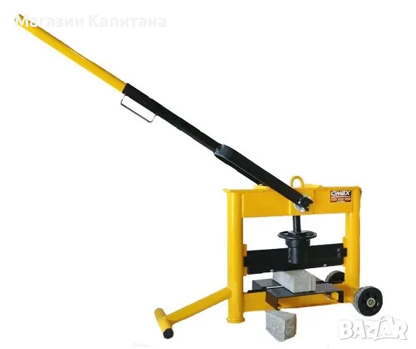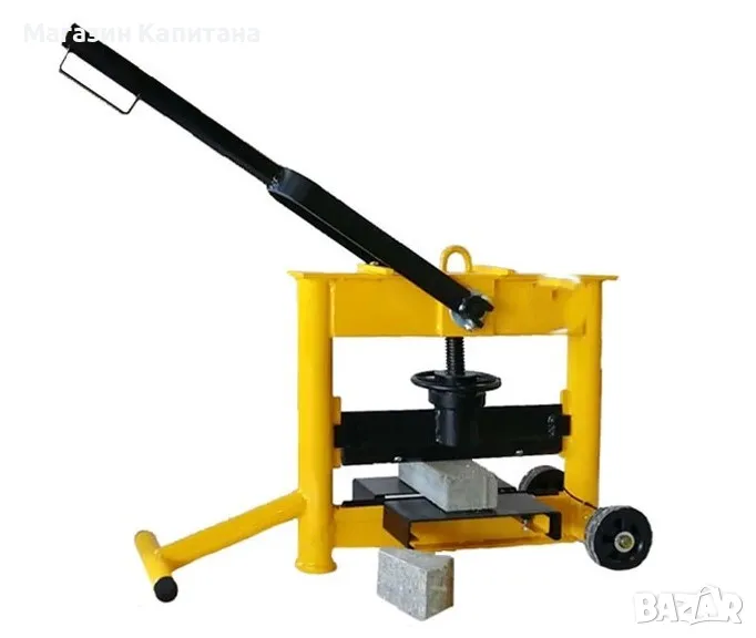 Резачка за павета под наем (наричана още гилотина за павета), предназначена за рязане на бетонови павета, унипавета и бордюри. С помощта на резачката за павета под наем, можете лесно и бързо, без шум и прах да режете бетонови блокчета. Изключително лесна за употреба, без нужда от електрическо захранване, резачката за павета под наем не изисква специални умения за работа. Гилотината за павета под наем е оборудвана с винт за регулиране на височината на ножа, което позволява намаляване на свободния ход на ножа при работа. Удълженото рамо на механизма за притискане на ножа, намалява значително усилието при работа, осигурява удобство и повишава производителността. От двете страни на долно-разположеният нож са монтирани регулируеми опори, позволяващи стабилно поставяне павето или плочката. Висока производителност - рязането се осъществява за секунди