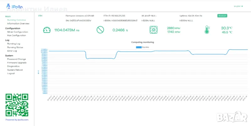 Крипто майнер Antminer IPOLLO V1H 950MH Ethash,ETC, QKC, CLO, POM, ZIL → Обява 49230388