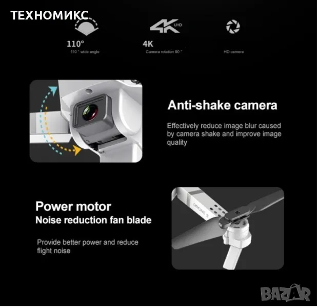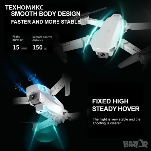 Иновативен мини дрон с висока резолюция от 4К HD - DRON E59 (4K+BAG) FS-6060 , видео