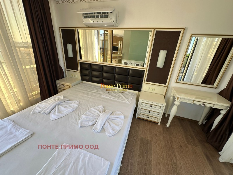 В сърцето на най-атрактивния черноморски курорт се открива един приказен рай шептящи каскадни води, необятна зеленина, изобилие на красиви растения, чистота и видимата идилия, някак приказно сгушена, скрита и толкова далечна с мястото, на което всъщност се разгръща Слънчев бряг. Мястото е пленително и отлично за семейни почивки през всички годишни сезони, където гостите сами избират как да прекарат своя престой. Комплексът се намира в непосредствена близост до морския бряг.Апартаментът се продава напълно обзаведен и оборудван с всички необходими електроуреди. Намира се на осми етаж и е с гледка към необятната морска шир и златистият плаж.Местоположението на комплекса благоприятства с тишина, прохлада и гарантира пълноценна и вдъхновяваща почивка.На място Ви очаква СПА и уелнес център с хидромасаж и парна баня, както и фитнес център..Наблизо се намира търговска улица с 2 хипермаркета, аптека и банкомат. Международно летище Бургас е на 25 минути с кола. На цялата територия на хотела е осигурен безплатен WiFi. Комплекса е с АКТ 16 и самостоятелни партиди за ток и вода.