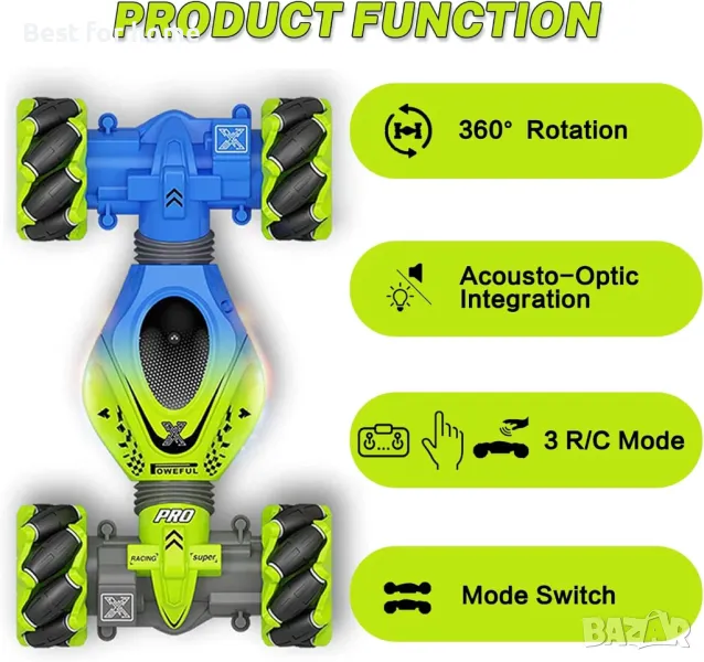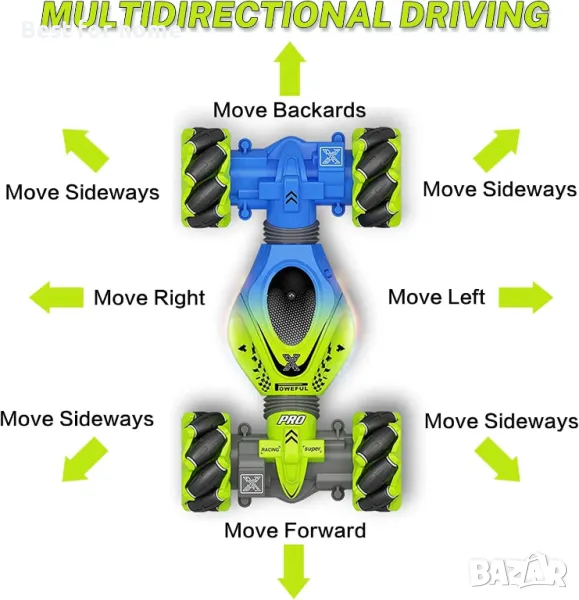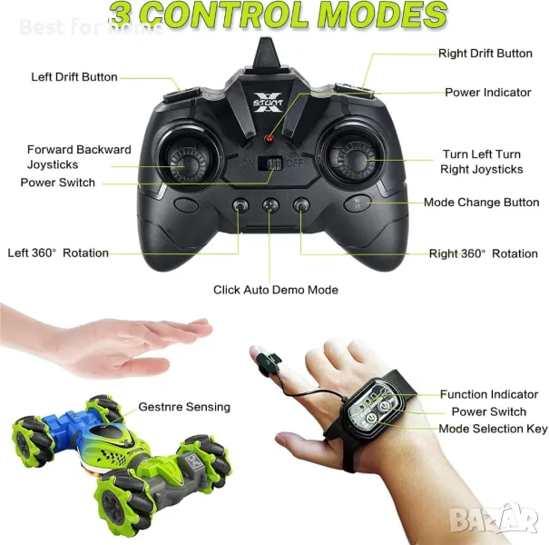 Управление с жестове - Просто махнете с ръка и RC колата ще се движи настрани или ще се завърти на 360 градуса с дланта ви.