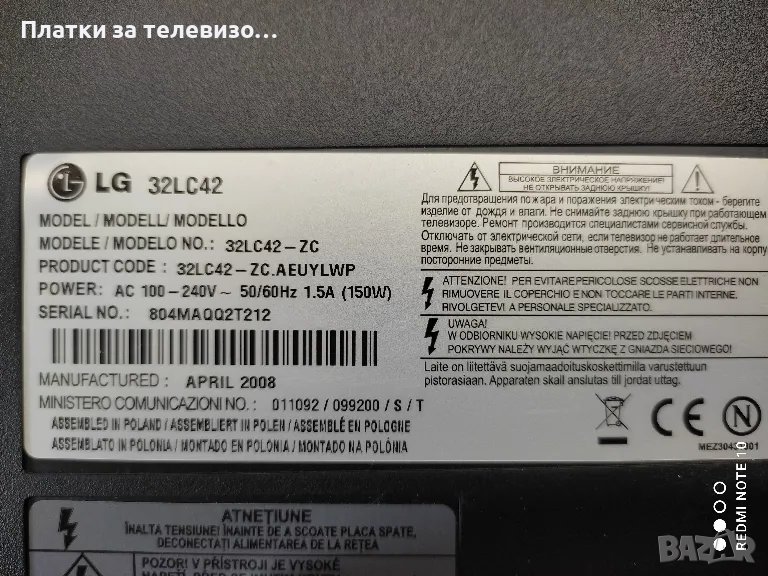 LG 32LC42 за части, снимка 1 - Части и Платки - 49231884 LG 32LC42 за части, снимка 2 - Части и Платки - 49231884 LG 32LC42 за части, снимка 3 - Части и Платки - 49231884 LG 32LC42 за части, снимка 4 - Части и Платки - 49231884 LG 32LC42 за части, снимка 5 - Части и Платки - 49231884 LG 32LC42 за части, снимка 6 - Части и Платки - 49231884 LG 32LC42 за части, снимка 7 - Части и Платки - 49231884 LG 32LC42 за части, снимка 8 - Части и Платки - 49231884 LG 32LC42 за части, снимка 9 - Части и Платки - 49231884 LG 32LC42 за части, снимка 10 - Части и Платки - 49231884 LG 32LC42 за части, снимка 11 - Части и Платки - 49231884 LG 32LC42 за части, снимка 12 - Части и Платки - 49231884 LG 32LC42 за части, снимка 13 - Части и Платки - 49231884 1/13
