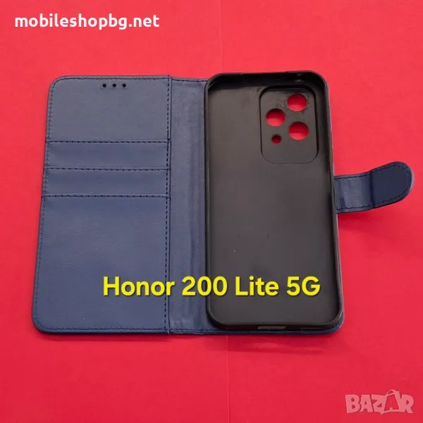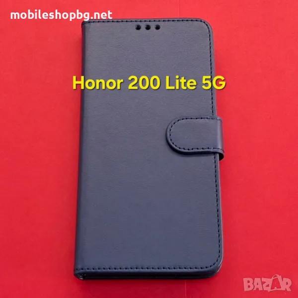 Honor 200 Lite 5G калъф страничен с прегради и закопчаване тъмно син → Обява 49232035