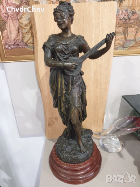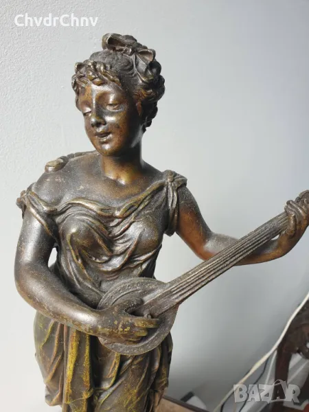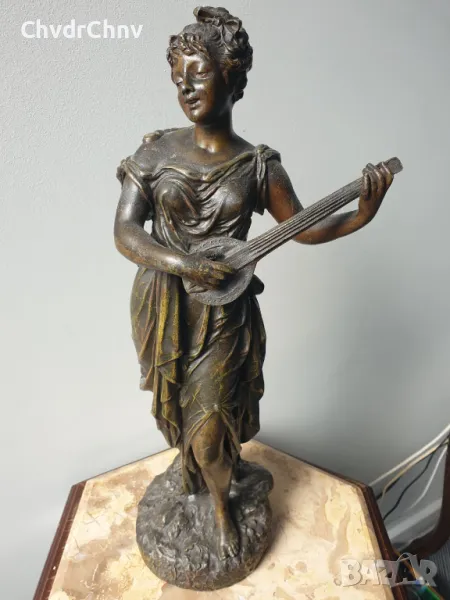 ЦАМ статуетка 48см-3кг/стара метална скулптура/метална фигура на жена-музикантка