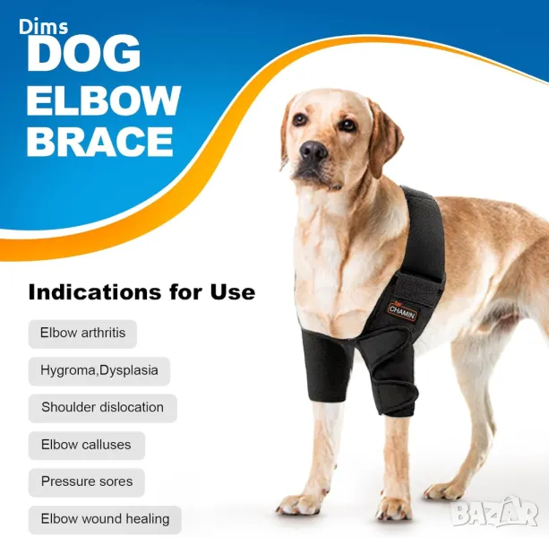 CHAMIN Кучешка лакътна шина за опора и защита на лакътя, , налакътници за кучета с дисплазия, мазоли, зарастване на рани в лакътя и др. (Двата крака, XS)