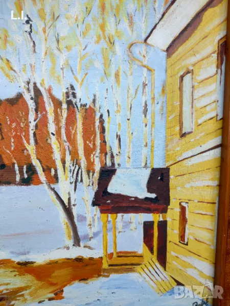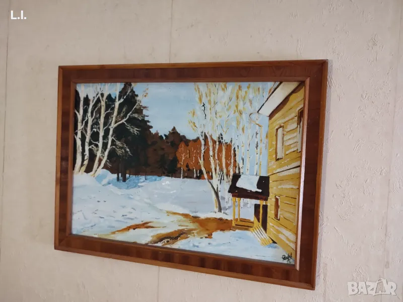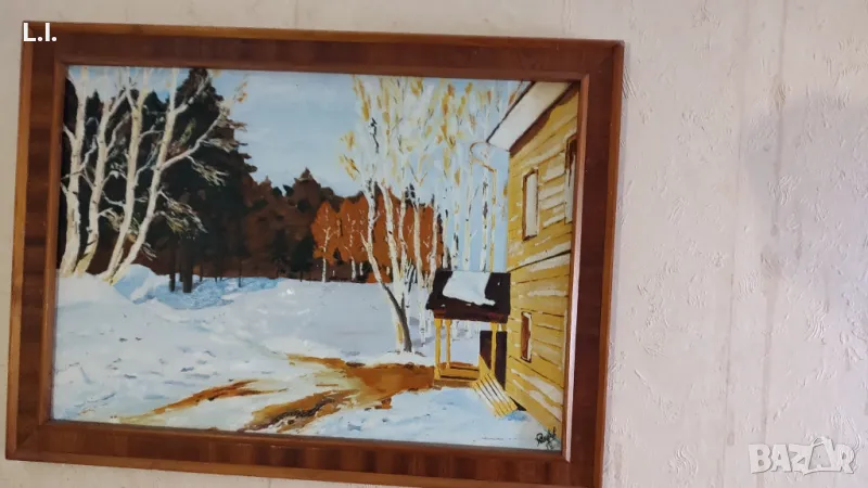 Картина масло върху платно с дървена рамка по мотиви на Исак Левиатан "Март"- авторска интерпретация . Художникът е успял да придаде успешно преливането на цветовете от по топли към по- мрачни, така характерни за преломните сезони в картините на Левиатан.В много добро състояние. Цена 7 000 лв.