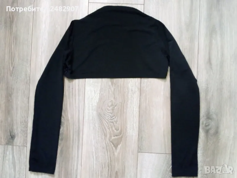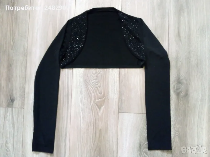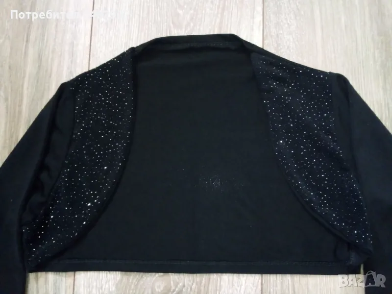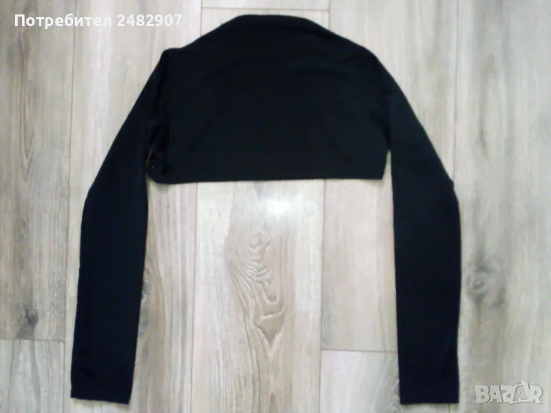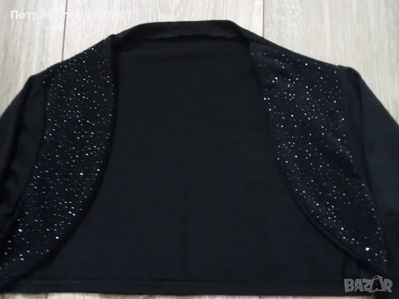Черни дамски ръкави от ликра с блестящ ефект. Ширина в раменете - 28 см, ширина под мишниците - 38 см, дължина от рамото до долу - 23 см, дължина на ръкава от рамото - 54 см, ширина на ръкава в долната част - 9 см. Използвани веднъж за повод, ефектни, без забележки.