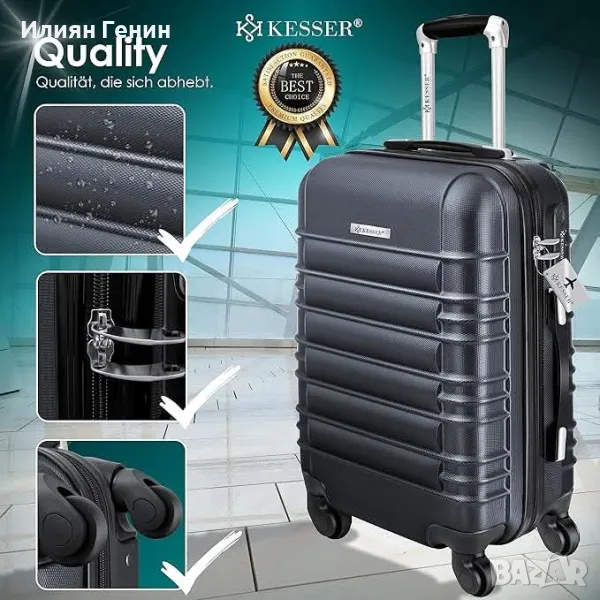 Високото качество на калъфа с марка KESSER е ненадминато. Изработен от здрав ABS материал, той е устойчив на драскотини и удари и може да издържи дори на тежки пътувания. Независимо дали пътувате със самолет, обществен транспорт или кола, този твърд куфар е идеален за всякакви ситуации.
