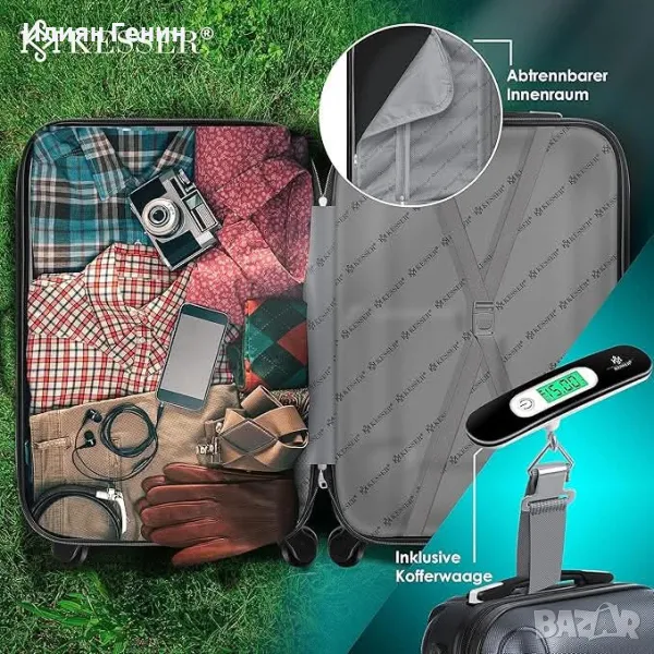 Включва кантар за багаж с LCD дисплей (килограми, грамове, унции, британски лири) за точно измерване на тегло до 50 kg