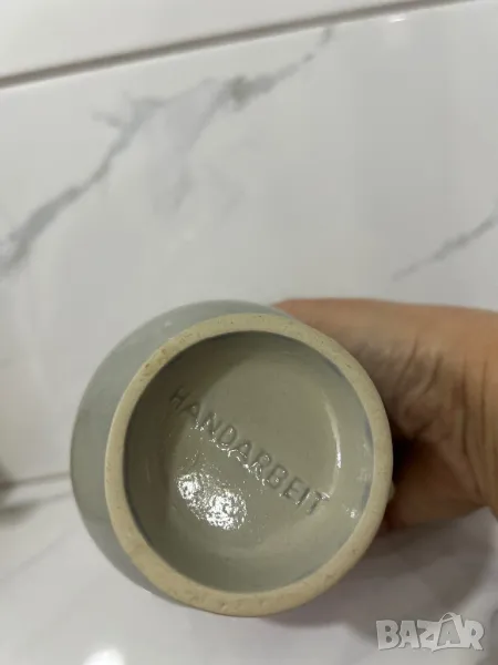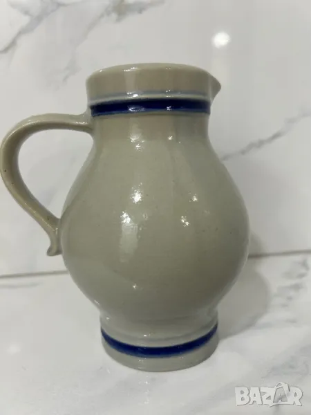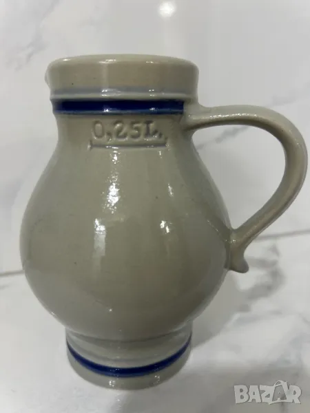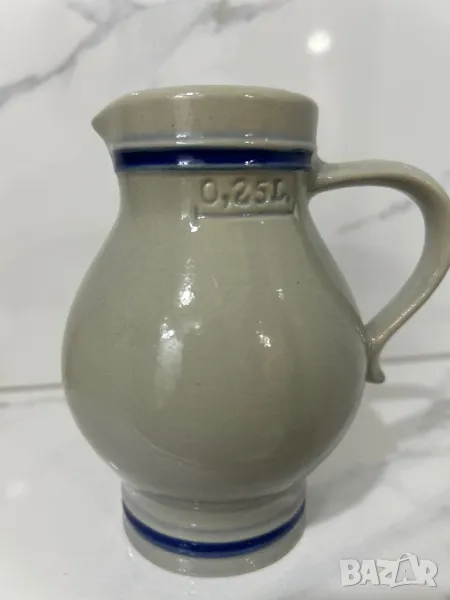 Сива глазирана каменна кана с декорация от синьо, вместимост 0.250 литра