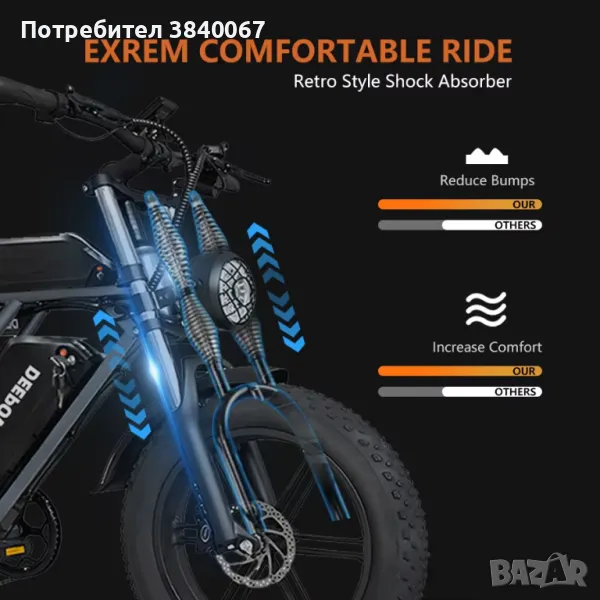 Амортисьор: Алуминиеви двураменни железни крака, заключваща вилка на амортисьора