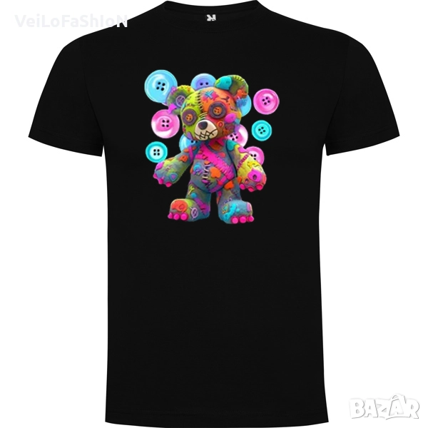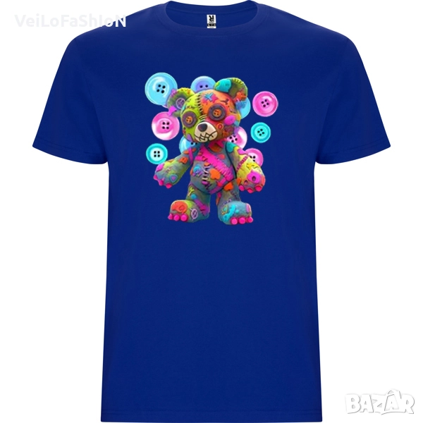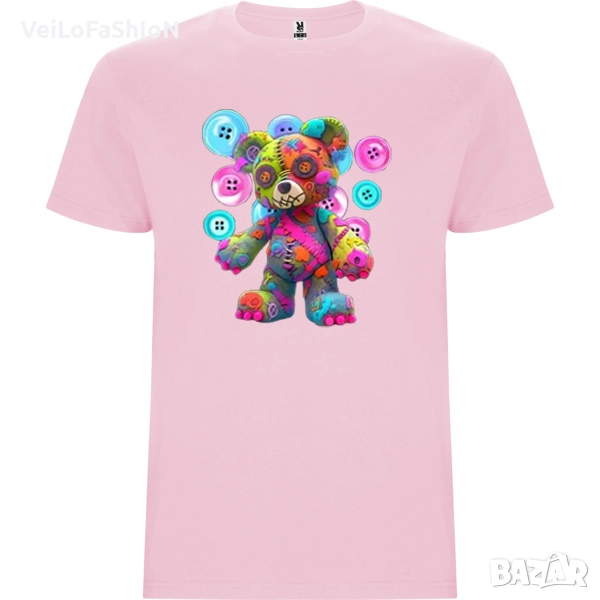 Новa детска тениска в бял, черен, син или розов цвят с Цветно Мече, произведена от 100% памук с плътност на тениската 190гр./м². Тениската е с тънко деколте съдържащо ликра за по-добра здравина при обличане. Подходяща както за ежедневна употреба, така и за спорт или тренировка в свободното време.