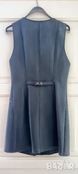 Елека е много интересен, със сладки ципчета и копчета тик так, става и за туника и за рокля, или пък разкопчан. Размер 38(С), дължина от рамо 84 см, 41 см от подмишница до подмишница, 42 см ширина при ханша.