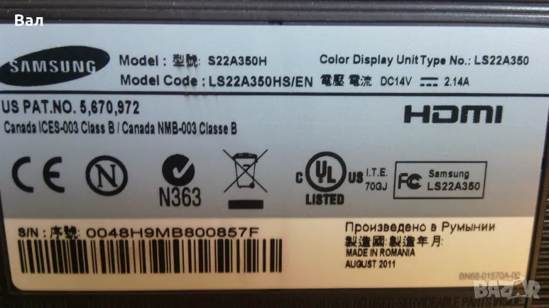 Монитор SAMSUNG S22A350 + адаптер за 14 волта → Обява 49235424