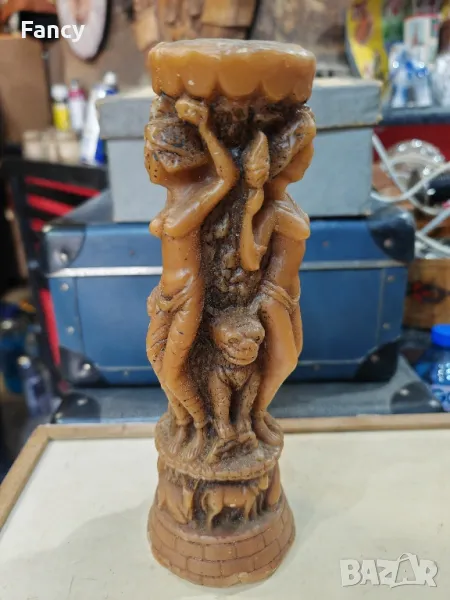 Продавам декоративна свещ с фигури в състоянието на снимките.