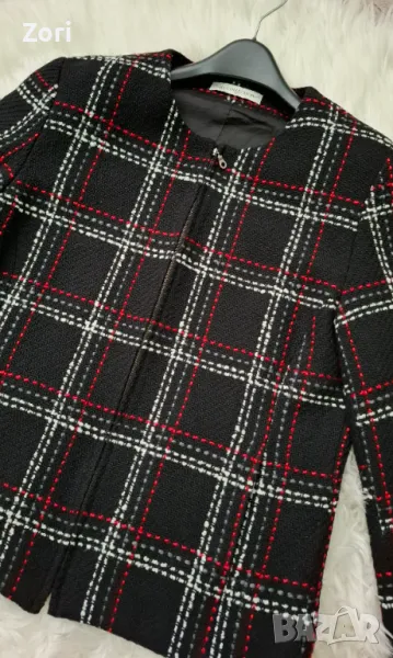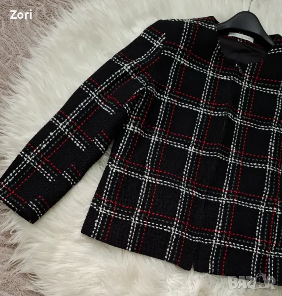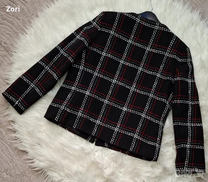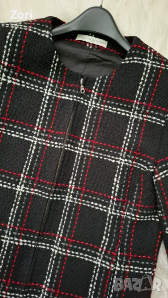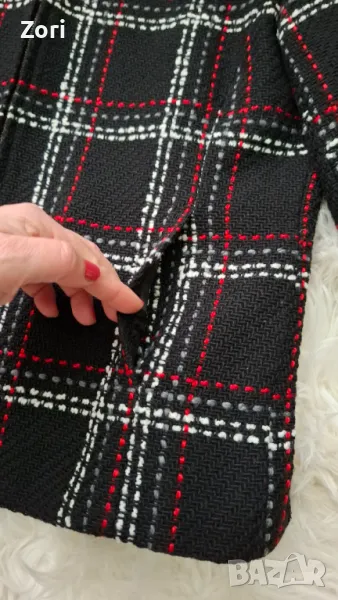 Черно сако в едро каре от бели, червени и сиви ивици Л/ХЛ размер → Обява 49235820