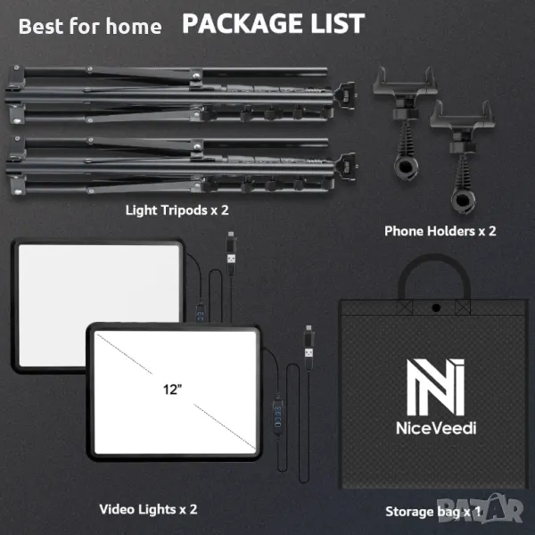 【Списък с пакети и обслужване на клиенти】Ще има 2 LED студийни светлинни панела с кабел. регулируема стойка за триножник за всеки светлинен панел, 1 ръководство за потребителя, 1 чанта за съхранение, 2 USB-C адаптера.