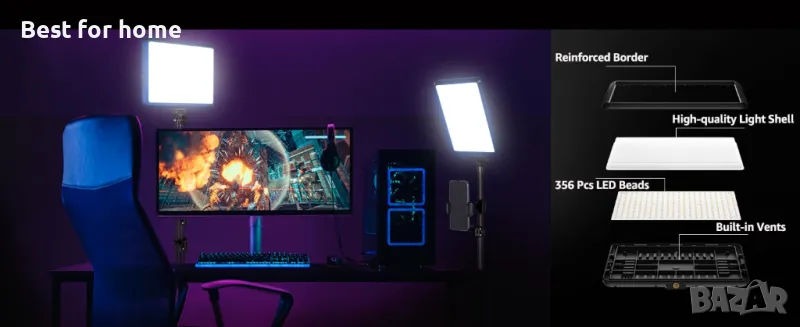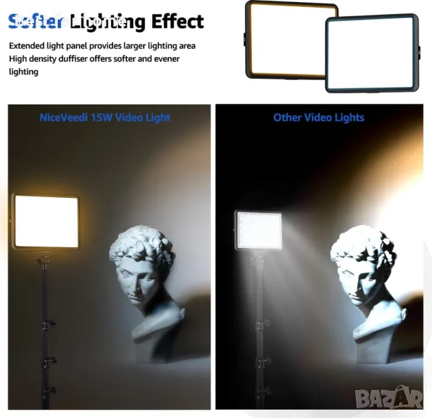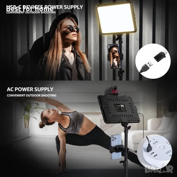 【СВЕТЛИНЕН ПАНЕЛ И ЗАХРАНВАЩ КАБЕЛ】Разширен LED светлинен панел с компактен дизайн ви позволява да го носите удобно с нашата издръжлива чанта за съхранение. Разширеният светлинен панел осигурява по-голяма площ от светлина, която ще бъде по-мека. Идеален USB порт за захранване на устройството с 5V, 2A Dc зарядно за стена или захранваща банка. Предлага се с USB-C адаптер, който ви позволява да захранвате устройството с мобилен телефон или лаптоп. Не изисква самостоятелно зарядно устройство или допълнителни батерии, което спестява време при подготовката за снимане.