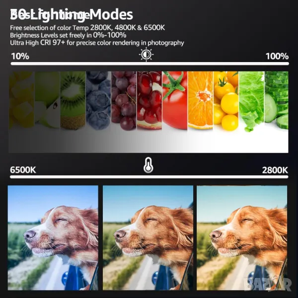 【МНОГО ЦВЕТНИ ТЕМПЕРАТУРИ И РЕГУЛИРУЕМА ЯРКОСТ】 Осигурете 3 цветни температури (2800K, 4800K и 6500K), за да създадете различна светлинна атмосфера; Тази подобрена студийна лампа, която е оборудвана с 352 Led мъниста, за да направи светлината по-изобилна и да избегне ненужните сенки. Разполага с висок CRI от 97+ за прецизно цветопредаване. Регулирайте яркостта в диапазон от 10 до 100% с бутон нагоре и надолу на дистанционното управление, за да отговаряте на различни обстоятелства при снимане, предлагайки допълнително осветление за вашите произведения.
