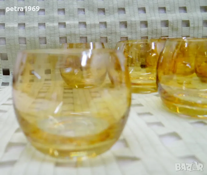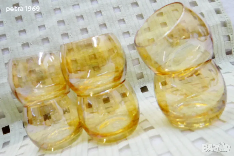 6 нежни сладучета, цветно стъкло, без никакви наранявания, без нащърбявания, ... побират около 75 мл. Цена 25 лв.