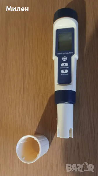 Цифров тестер 5 в 1, който може да измерва 5 параметъра: соленост, рН, общо разтворени твърди вещества във водата, TDS, електропроводимост, EC и температура на течен разтвор.