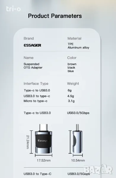 Essager комплект преходници OTG Type C към USB Micro USB към Type C адаптер OTG USB към Type C.