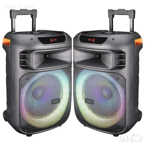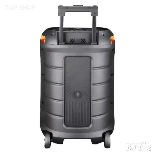 Функции: USB/TF слотове, FM радио, Bluetooth; Цветно осветление: Да; Дръжка и колела: Да; Батерия: 7.4V/3600mAh; Честотна характеристика: 45Hz-20kHz; Съпротивление: 3 ohm; Мощност: 40W; Аксесоари: Адаптор за зареждане, 2 бр. безжичен микрофон; Цвят: Черен; Нето тегло: 6.35kg; Бруто тегло: 8.7kg; Размери (ВхШхД): 535x350x325mm; Размери на опаковка (ВхШхД): 573x378x365mm; Вариант 1: 12 инча 169 лв и 15 инча 202 лв