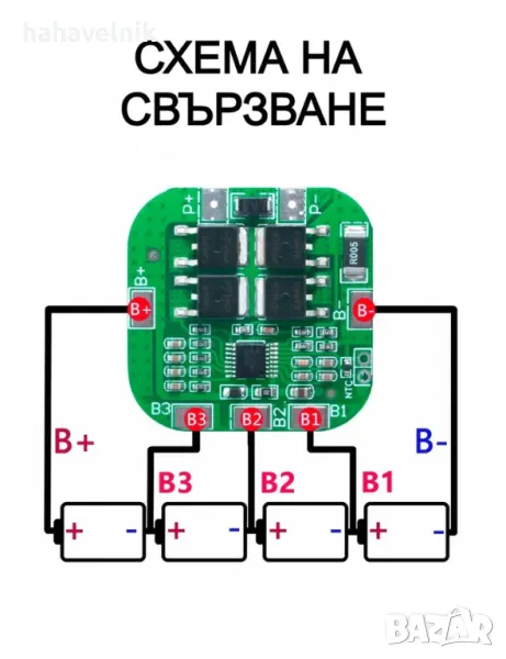 BMS Контролер 4S за зареждане на литиево йонни батерии, зарядно за 4 клетки 20А → Обява 49238061