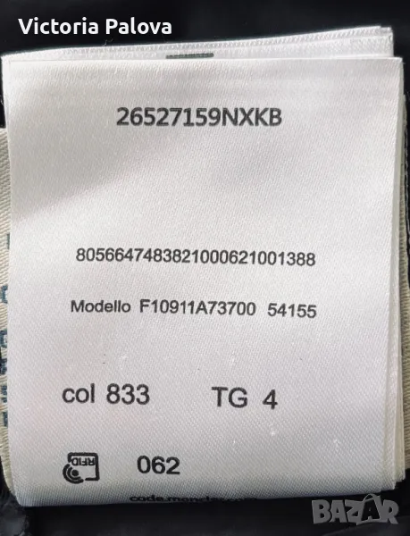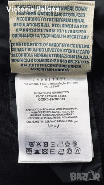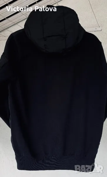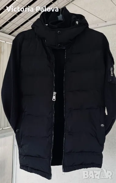 Много хубаво яке със сваляема качулка, на ръкава е с джобче с цип, два джоба с копче тик-так, гъши пух отпред и качулка, ръкавите и гръб - текстил. Копчетата и циповете са брандирани. Цената е съобразена с единствена забележка - ципът е развален, за поправка е. Рамо - 44см, ГО - 54см, дължина - 62см, ръкав - 60см.
