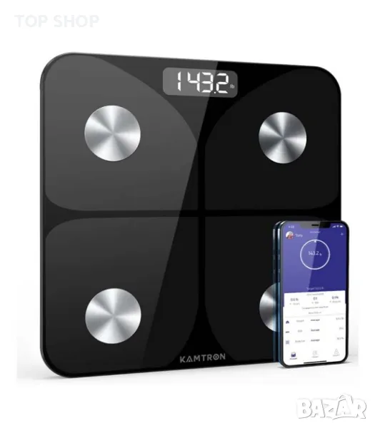 - KAMTRON Интелигентни везни за телесни мазнини – Везни за баня Анализатор на състава на тялото, високо прецизно измерване на ИТМ, висцерална мазнина, мускули, телесна възраст и т.н., Smart APP за проследяване на фитнес