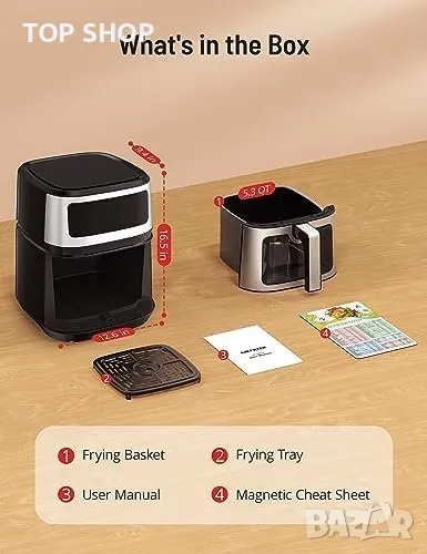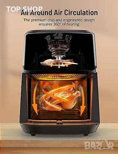 Фритюрникът е оборудван с усъвършенствана технология за нагряване, която осигурява 360° равномерна циркулация на въздуха. Това означава, че храната ви ще излезе хрупкава и златиста отвън, а отвътре ще бъде перфектно сготвена.