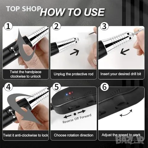 Нова електрическа пила за нокти 30000RPM за акрил гел педикюр маникюр → Обява 49239110