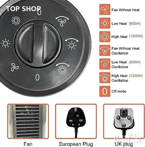 Енергоспестяваща функция: Електрически керамичен нагревател с ниска консумация, мощност 1200/600W.