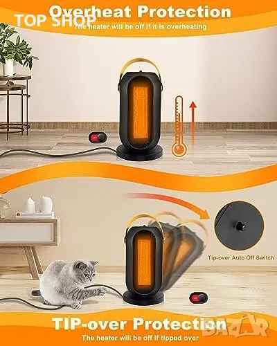 Защита от прегряване и преобръщане: Автоматично изключване при прегряване и падане.