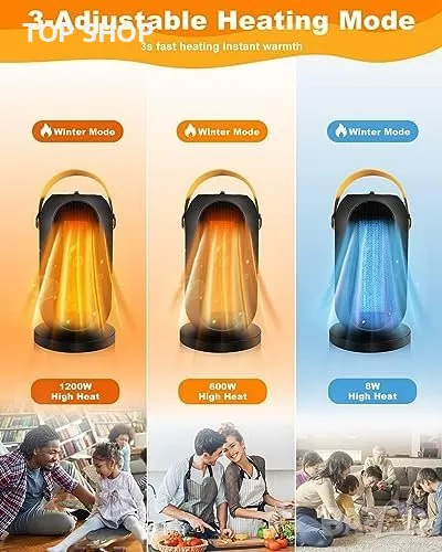 3 режима на работа: Включва естествен въздушен режим (10W), слаб режим за отопление (900W) и силен режим за отопление (1200W).