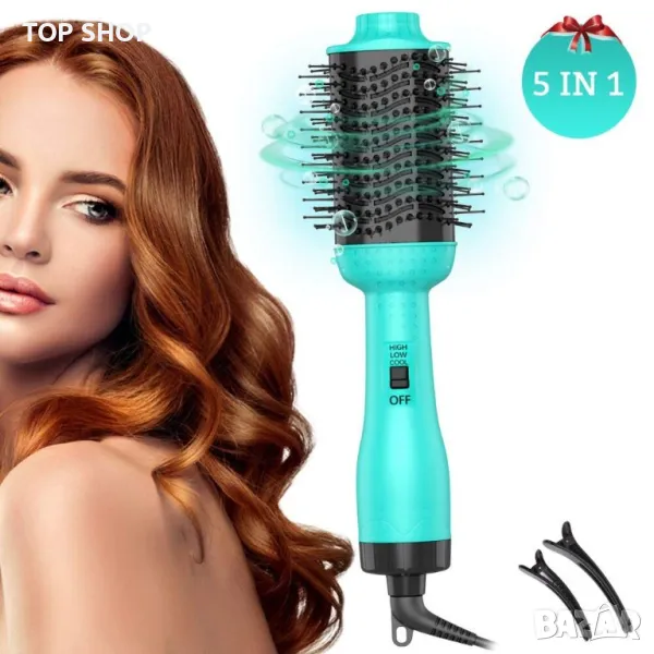 5 в 1 - четка за коса, сешоар за къдрене и изправяне + масаж