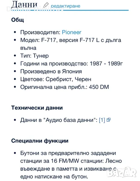 Един много рядък и качествен тунер от небезисвестният производител Pioneer модел F-717 в топ състояние.