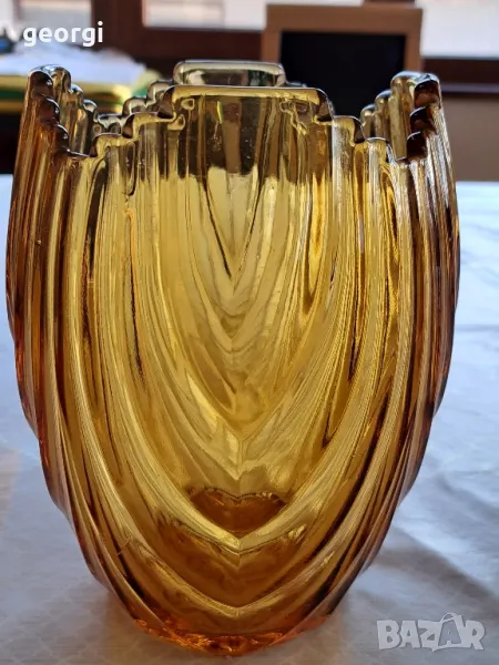 винтидж ар деко ваза цвят кехлибар 22/5 → Обява 49240301