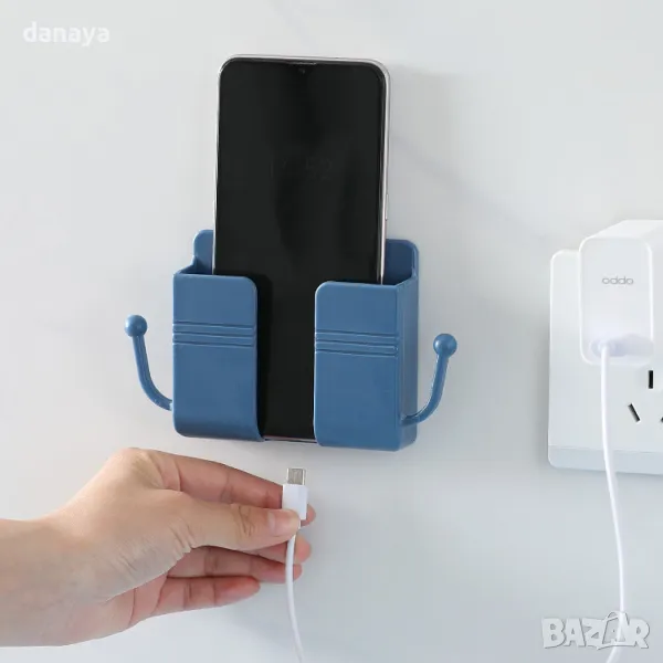 Стенна стойка за зареждане на смартфони и дистанционни управления – практично решение за организация в дома или офиса. Тази лепяща стойка за стена осигурява удобно място за вашия телефон, дистанционно или други малки аксесоари. С 2 вградени куки отстрани, които позволяват лесно организиране на USB кабели, слушалки и други дребни вещи. Здравата пластмасова конструкция гарантира стабилност, а разнообразните цветове – жълт, зелен, син – се вписват идеално във всеки интериор.