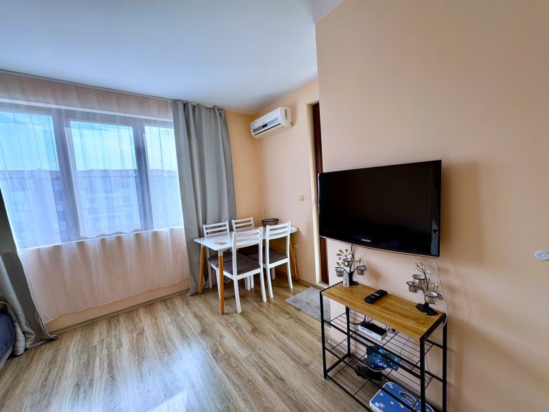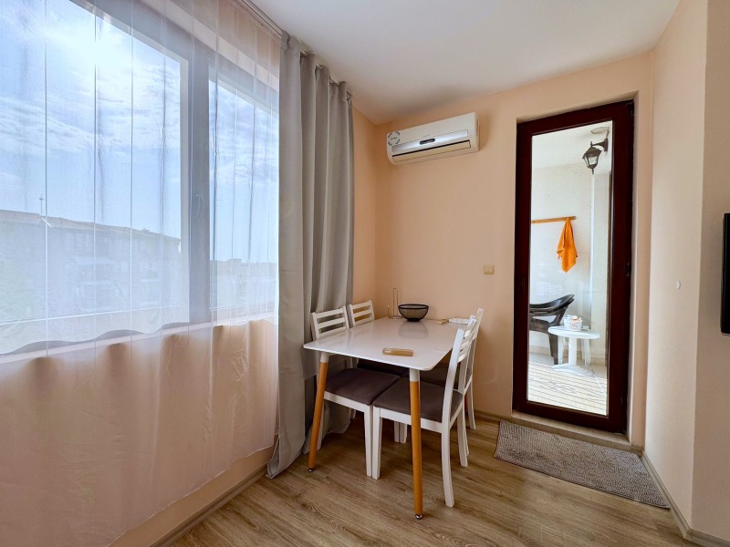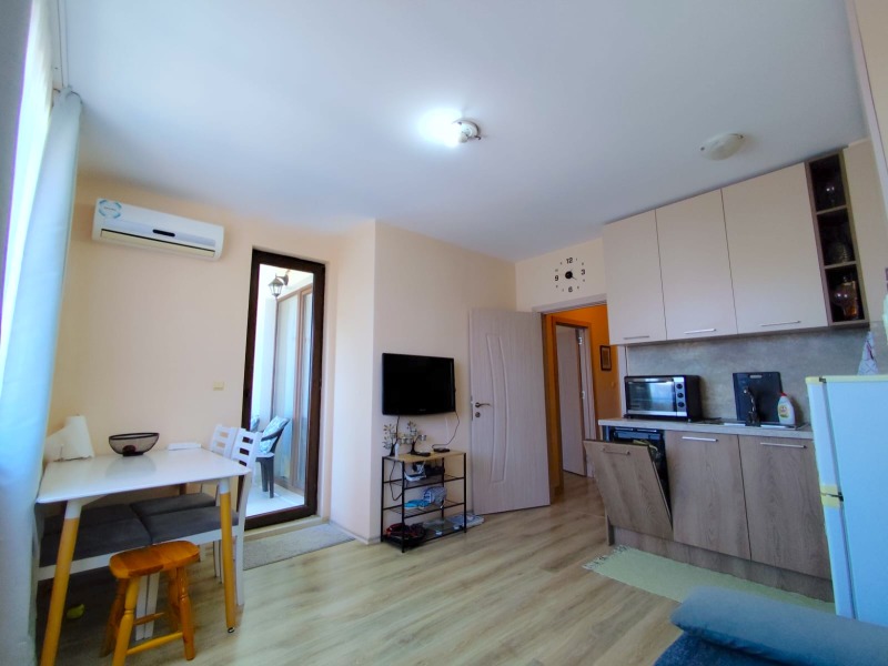 Прекрасен двустаен апартамент в емблематичният комплекс Аполон гр. Несебър.К-са на 150 м. от плажа. Апартаментът с площ 55 кв.м. Състои се от а дневна с кухненски бокс, спалня, баня с тоалетна и тераса. Продава се обзаведен и разполага с всичко необходимо. Комплексът разполага: басейни, детски басейни, детски площадки, ресторанти, бар, магазини,тенис корт,СПА, охрана, паркинг. Аполон, за разлика от много други комплекси, предоставя възможност за целогодишно живеене. Цялата инфраструктура работи, през всички сезони. Собствениците на недвижим имот в Аполон могат да бъдат спокойни за качеството на закупеното жилище и неговото .Комплексът е с целогодишна охрана ,а управляващата компания решава всички възникнали проблеми.Също така,всеки собственик ,може да ползва всички съоръжения на територията на 9-те сгради на комплекса.Във близост е прекрасният Аквапарк.
