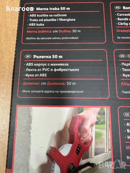 Геодезична ролетка метър Parkside с лента от фибростъкло за измерване на топограф с дръжка 50 m, снимка 1 - Други инструменти - 49240444 Геодезична ролетка метър Parkside с лента от фибростъкло за измерване на топограф с дръжка 50 m, снимка 2 - Други инструменти - 49240444 Геодезична ролетка метър Parkside с лента от фибростъкло за измерване на топограф с дръжка 50 m, снимка 3 - Други инструменти - 49240444 Геодезична ролетка метър Parkside с лента от фибростъкло за измерване на топограф с дръжка 50 m, снимка 4 - Други инструменти - 49240444 Геодезична ролетка метър Parkside с лента от фибростъкло за измерване на топограф с дръжка 50 m, снимка 5 - Други инструменти - 49240444 Геодезична ролетка метър Parkside с лента от фибростъкло за измерване на топограф с дръжка 50 m, снимка 6 - Други инструменти - 49240444 1/6
