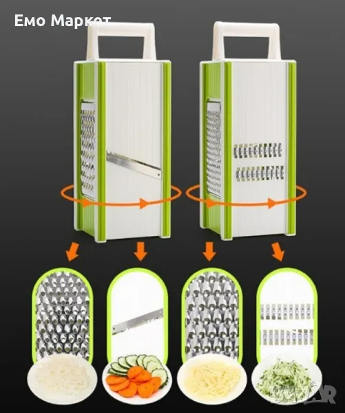 Рендето Multi Purpose Grater е новият многофункционален шредер за зеленчуци, четири в едно ренде, с подарък белачка за картофи, краставици и други.