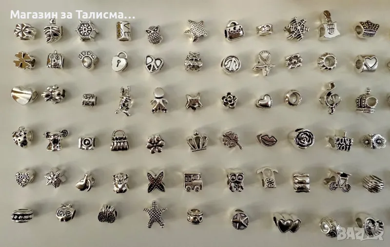 Продавам сребристи талисмани, съвместими с гривни Pandora.