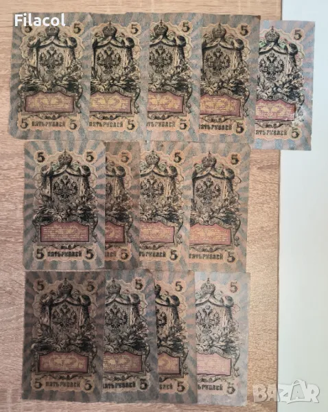 Лот Русия 13 броя 5 рубли 1909 Шипов и без повтарящи подписи → Обява 49242225
