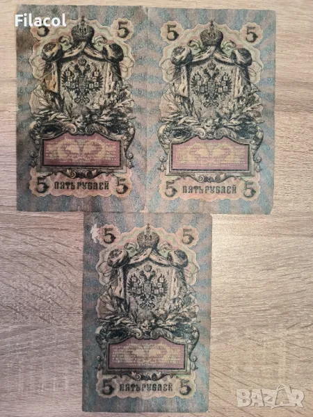 Лот Русия 3 броя 5 рубли 1909 Коншин и без повтарящи подписи → Обява 49242283